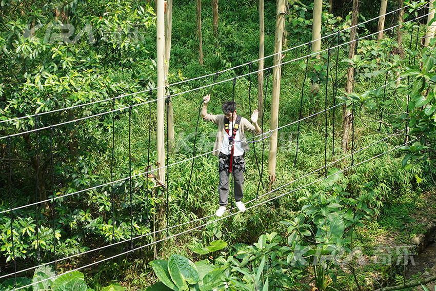 通過(guò)懸空橋梁、攀爬網(wǎng)道、飛狐索道、平衡木桶和搖擺秋千等多樣化關(guān)卡,廣東奇樂(lè)文旅有限公司將樹(shù)木連成一條條刺激有趣的線(xiàn)路。這些關(guān)卡需要參與者運(yùn)用爬、滑、游、跨、跳、飛等動(dòng)作通過(guò),不僅考驗(yàn)體力,更需要平衡力和身體協(xié)調(diào)能力。